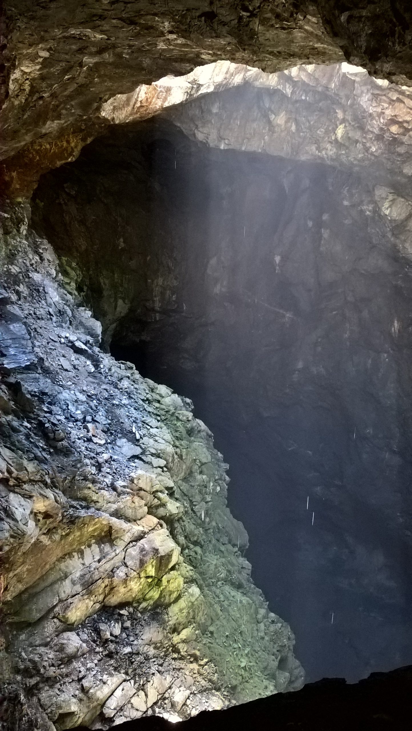 - Un raggio di sole penetra nella miniera attraverso lo sfondamento della volta. A sunbeam through the collapsed ceiling.