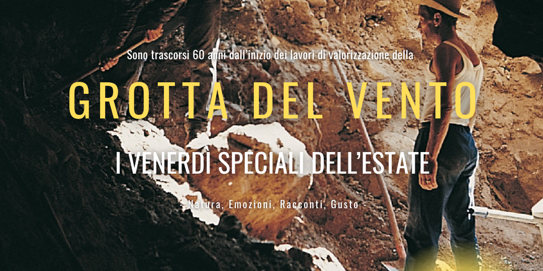 A 60 anni dall’inizio dei lavori di valorizzazione, riparte alla Grotta del Vento una serie di eventi ideati per diffondere tra il pubblico non solo la conoscenza del mondo sotterraneo, ma anche lo spirito d’avventura e di conoscenza che anima gli speleologi, oltre alle sensazioni che si possono provare nella suggestione di un ambiente perennemente avvolto nel buio, dove il silenzio è rotto solo dal ticchettio delle gocce, dal sibilo del vento e dallo scrosciare di corsi d’acqua che scompaiono nel nulla.